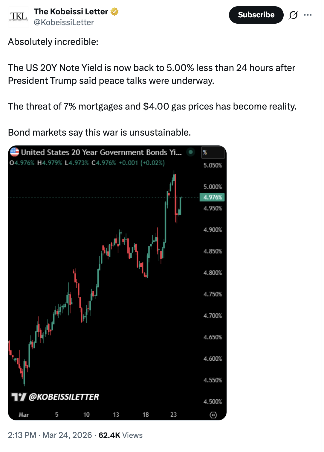 战争引发的石油价格上涨加剧了市场对通胀的担忧,国债收益率也随之上升,这增加了2026年零利率的可能性。