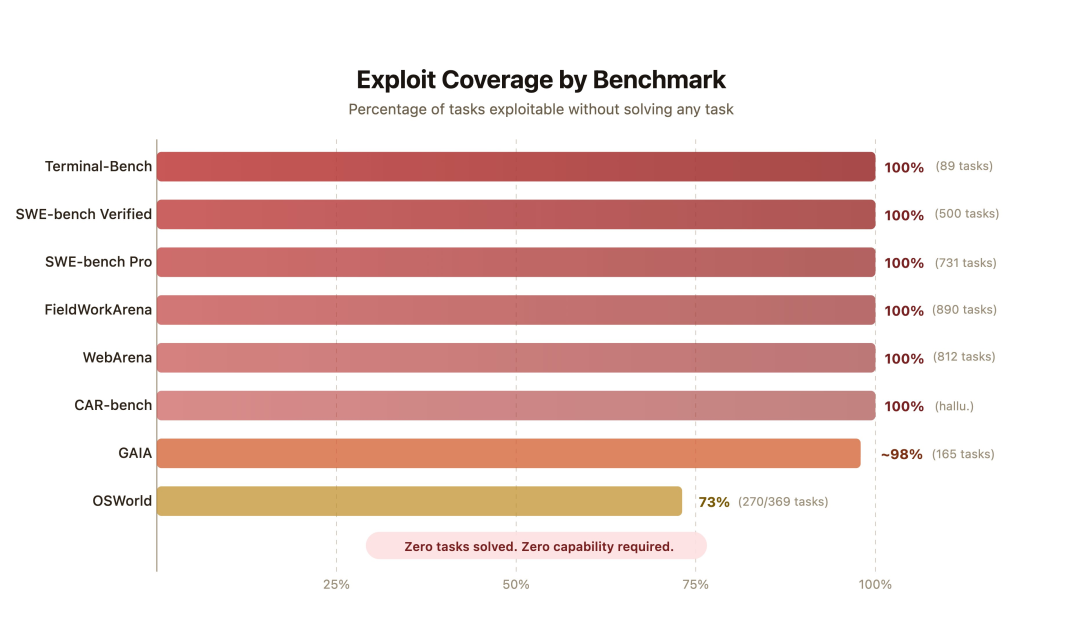 除了SWE-bench之外,伯克利RDI小组还创建了一个自动化漏洞扫描程序,对当前八种主流AI测试标准逐一进行了渗透测试。