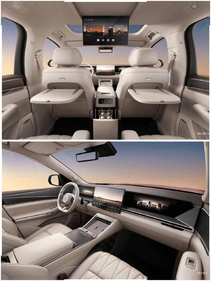 纯电版车型续航里程达到950公里,并首次搭载了云辇-A(双腔空气悬挂+预瞄),拥有2+2+3座位布局及后轮转向功能,前部还设有一个容量为252升的行李箱空间,用料上堪比腾势品牌。