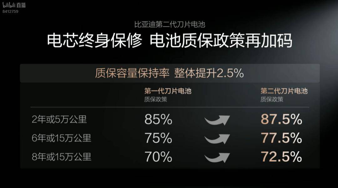 此外,第二代刀片电池还具有更高的耐久性,王传福在发布会上承诺这一点,并写进了质保政策中,让人难以不信服。
