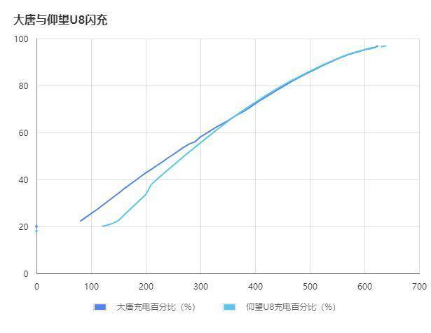 因为比亚迪车机界面并未显示充电功率数据,所以我逐帧统计了大唐和仰望U8这两款车型的充电百分比及续航情况,结果发现闪充技术在输出电能时表现得非常平稳。