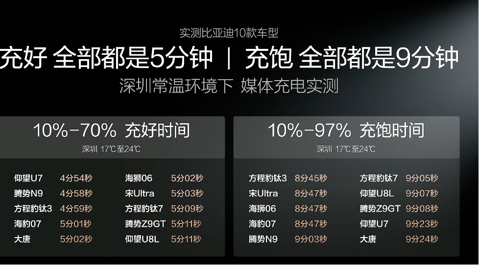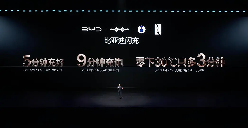然而比亚迪宣称其车型续航里程可达千公里级别,并且闪充技术能在5分钟内完成充电;在极端寒冷条件下也能实现十分钟快充。此外,公司还计划在全国范围内建设上万座快速充电站。