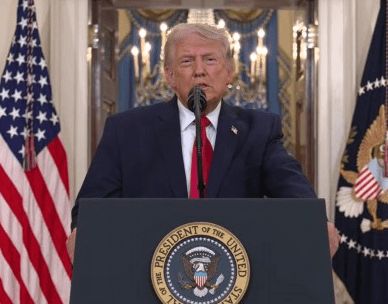 特朗普讲话画面。