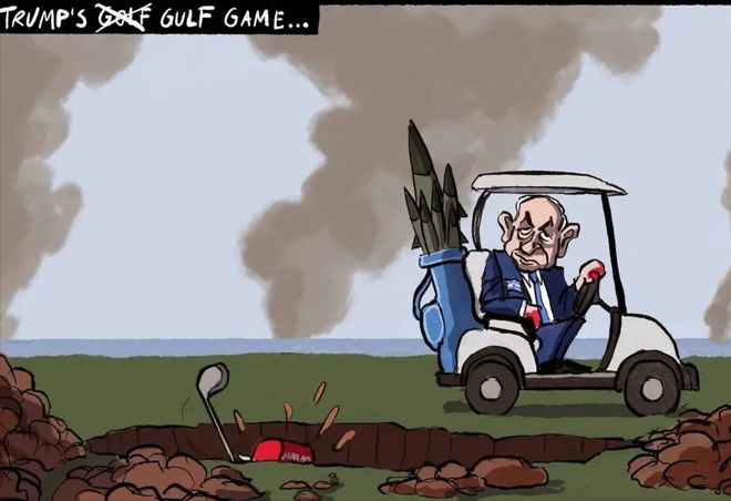 漫画恶搞内塔尼亚胡给特朗普挖坑