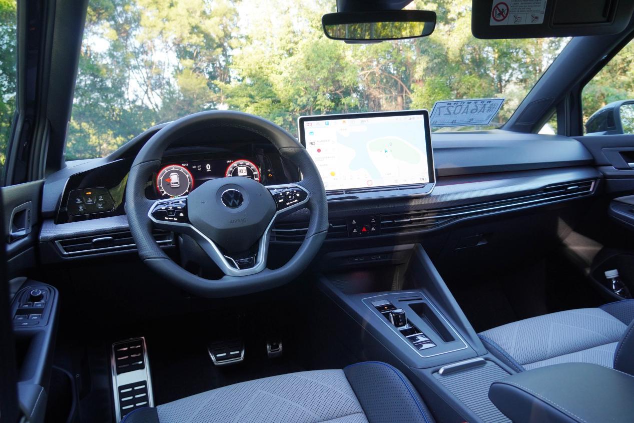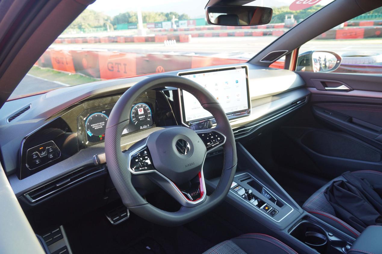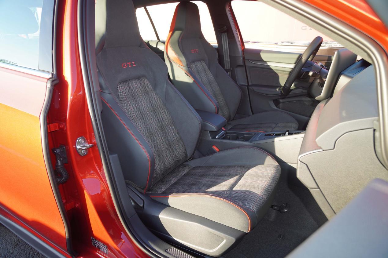内饰部分其实和家族中的其他两个版本没有什么太大区别,苏格兰格子旗座椅是大众GTI车型的比较经典的造型。在方向盘和座椅上都可以找到专属的GTI标识。