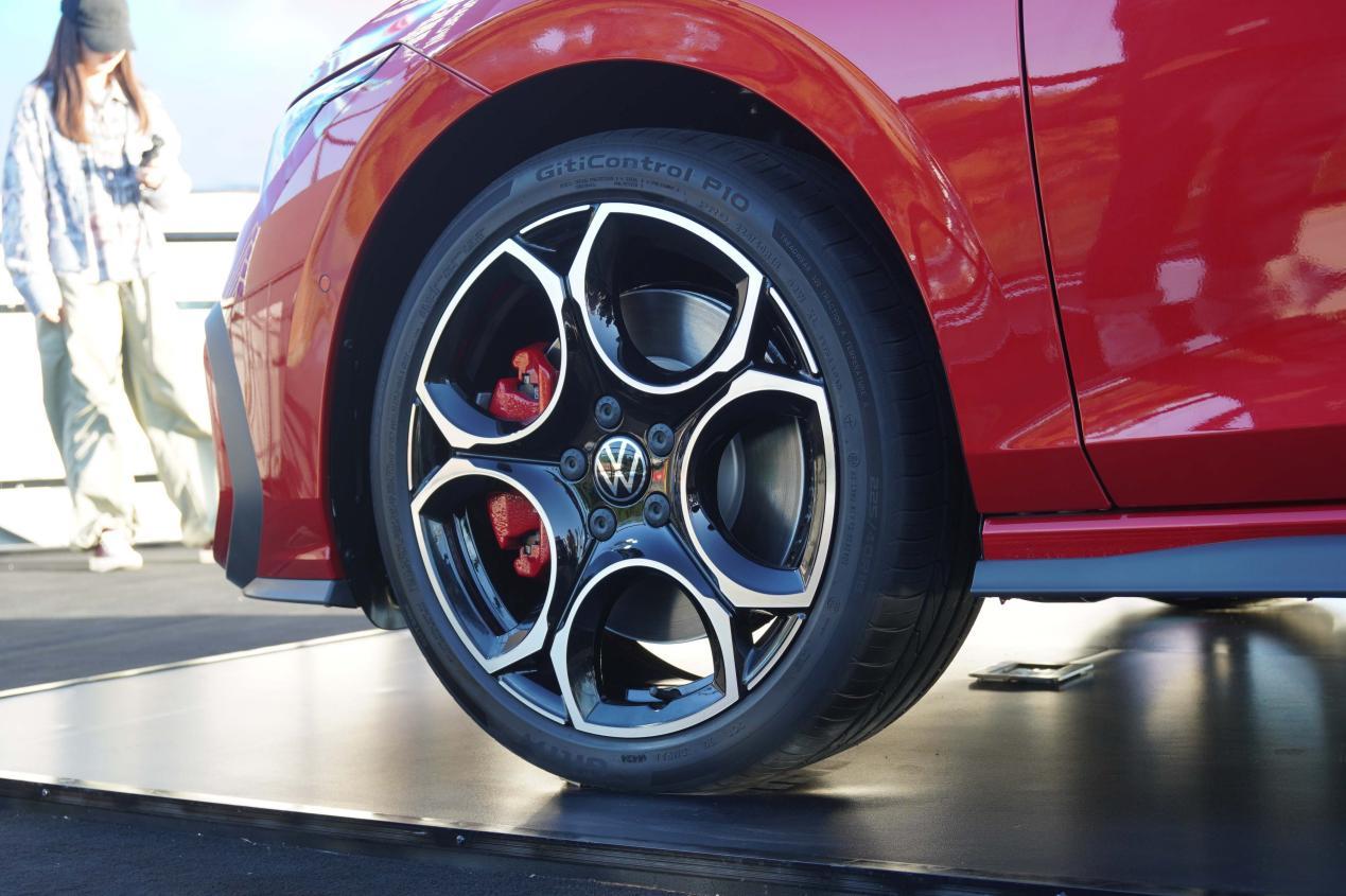 车测线条更加的干练,在翼子板两侧加入了“GTI”标识。造型更加动感的轮毂和红色的卡钳也让这台车的视觉感受和性能得到了提升。车顶上方设计有扰流板,双出排气也代表着这台车性能不俗。