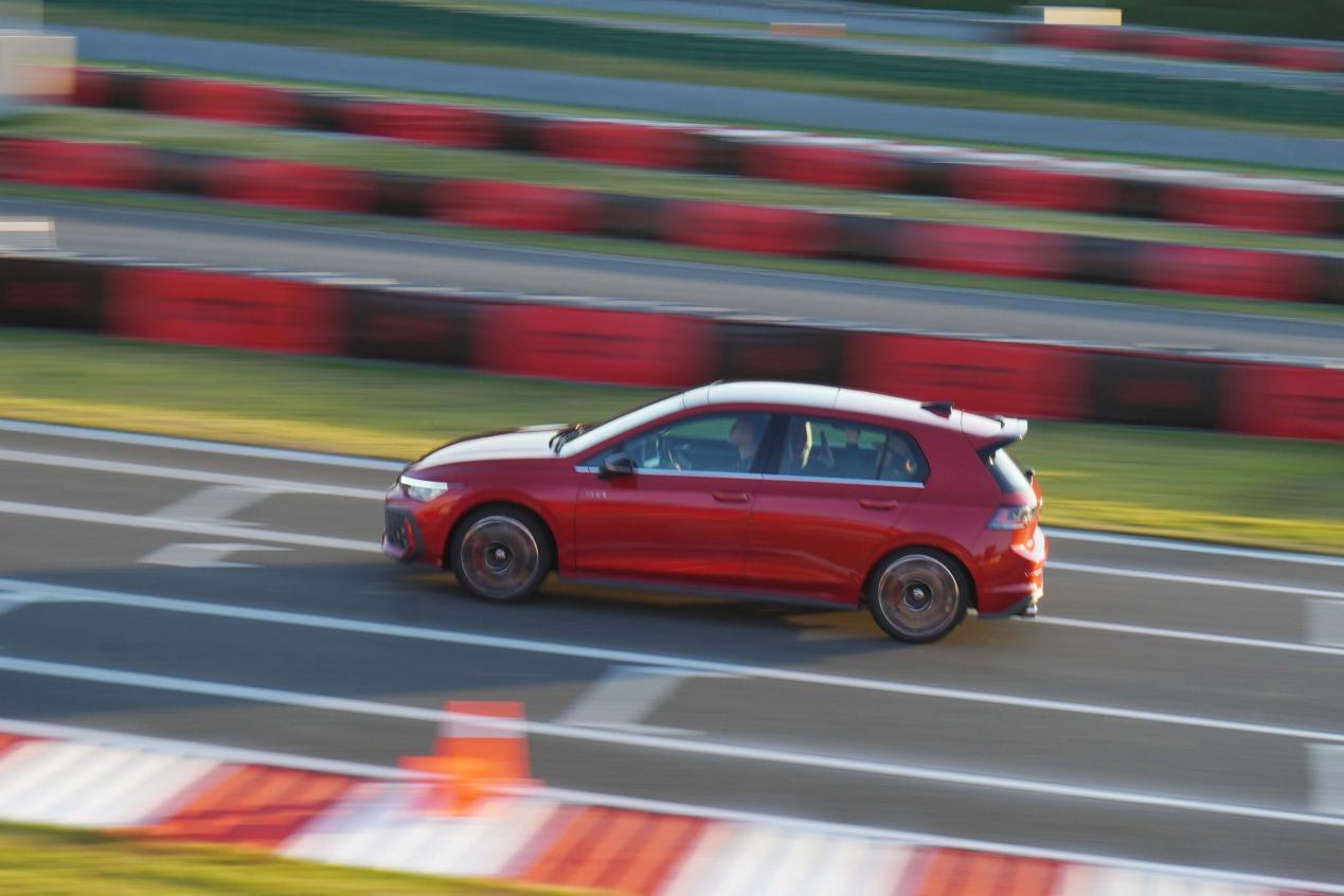 在弯道中,这台车的转向精准,即使你是第一次跑跑赛道,熟悉过后,也能做出较为专业的动作和圈速。转向手感不算沉,指向性也不错,能明显感知轮胎的角度和位置。避震要比R-line版本调校的更硬朗,在大角度弯道中,能过很好的撑住车身,侧倾的角度并不大。