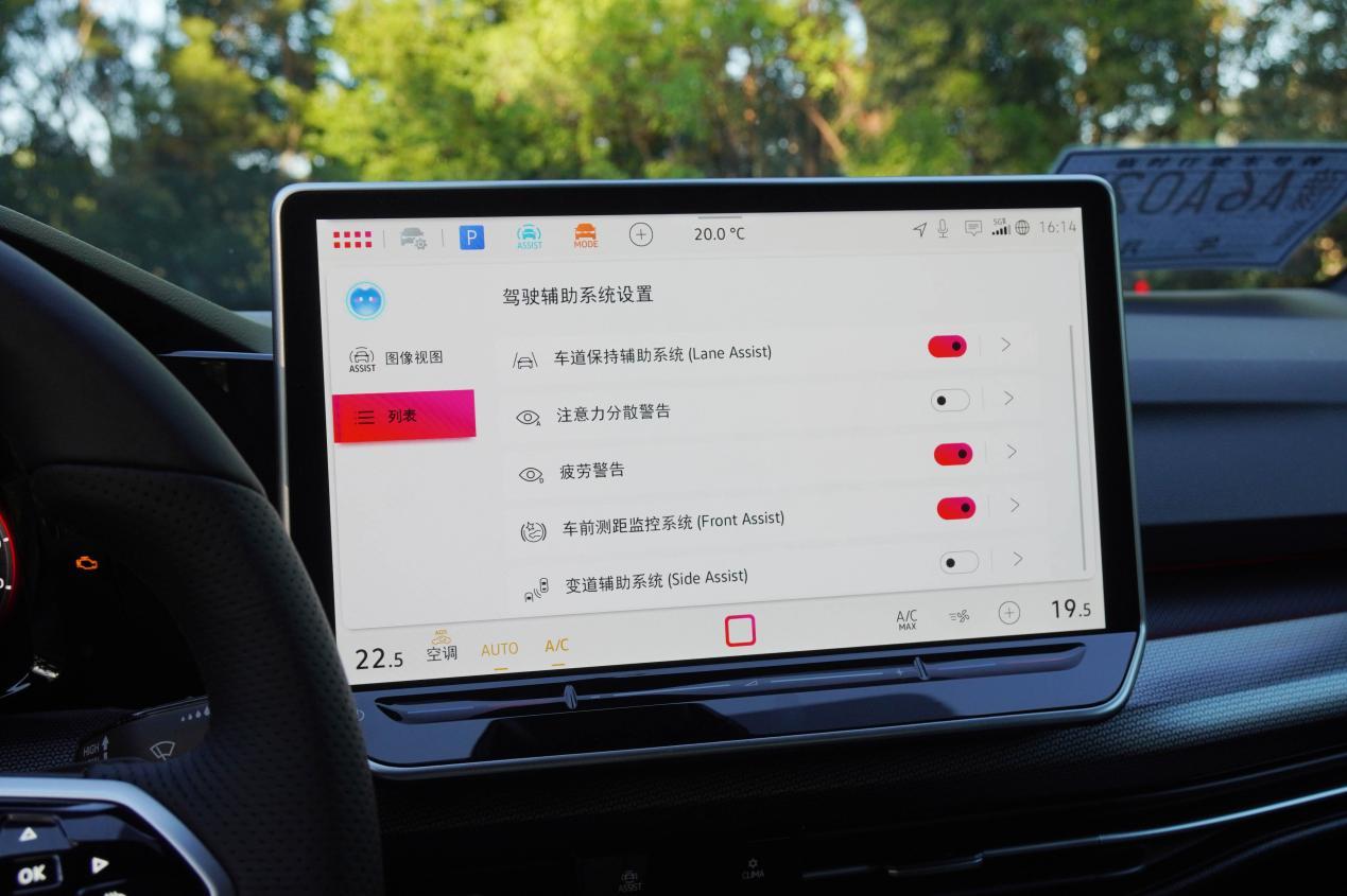 全新高尔夫配置有L2级的驾驶辅助系统,在高速驾驶开启时,疲劳警告、注意力分散警告可以有效的帮助驾驶者规避潜在的危险。车道保持和纠偏的力度不算大,柔和的力度也不会让你感到不适。