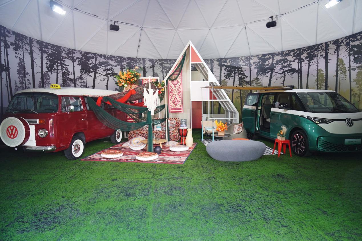 从大众T2到ID.Buzz,代表着大众Bulli车型开启了自己的新篇章。他们不仅仅是一台交通工具,也是一种生活方式的表达。这点从时光巴士展区的布置就能看的出来。