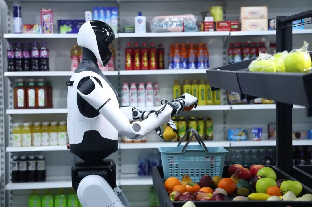 没有方向盘的无人驾驶车辆与上班的白领一同穿梭在街头;斑马线旁,年轻的程序员手握冰美式,正通过耳机调试人形机器人的步态算法和关节模组扭矩;而在不远处的酒店旋转门里,一台送完外卖的机器人正轻巧地避开人群,发出礼貌的电子提示音。