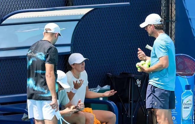 质疑声不仅来自于外界,伊加本人也多次向教练团队发泄了自己的不满,在前一站印第安维尔斯对阵斯维托丽娜之时,斯瓦泰克已经有过摔毛巾的举动。在迈阿密的备赛期间,仍旧能从物料中看到训练时神情沮丧的运动员和尝试沟通的教练。