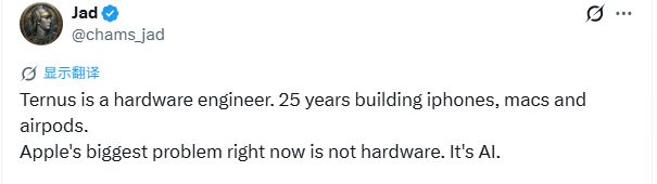 有网友把问题点得很透,特努斯干了一辈子硬件,25年来经手的全是iPhone和Mac以及AirPods这些东西。可苹果现在最棘手的根本不是硬件而是人工智能。