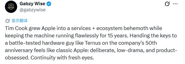 一位网友看得更远一些。他注意到一个信号,库克这15年把苹果做成了全球市值第一的公司靠的是服务、订阅和供应链。而特努斯整个职业生涯都围着实体产品转,包括iPhone、Mac和芯片。现在换一个硬件专家上去的意思再明显不过,苹果下一阶段可能不再押注每个月能收多少钱而是重新押注能造出什么东西。