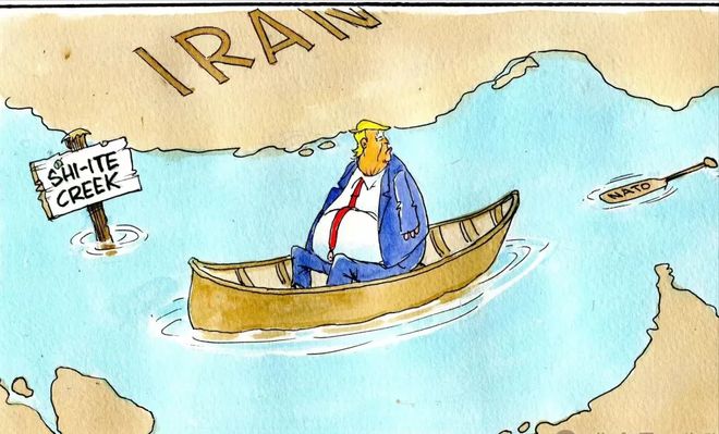 特朗普在霍尔木兹海峡失去北约助力 漫画图