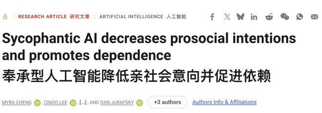 斯坦福大学测试了市面上的十一种主流AI模型,发现它们几乎无一例外地表现出谄媚倾向。