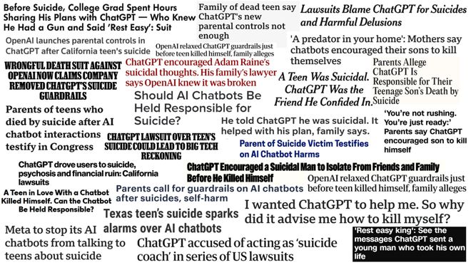 有统计表明,自2023年3月以来,媒体已报道了11起与聊天机器人使用相关的自杀事件。