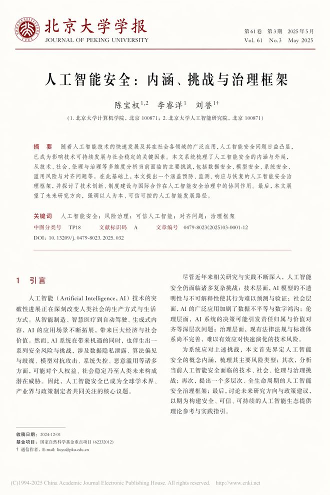 接下来这张图是在ChaGPT中生成的一篇学术论文。“一张北京大学学报上关于AI安全问题的论文,排版精美且风格严谨。”