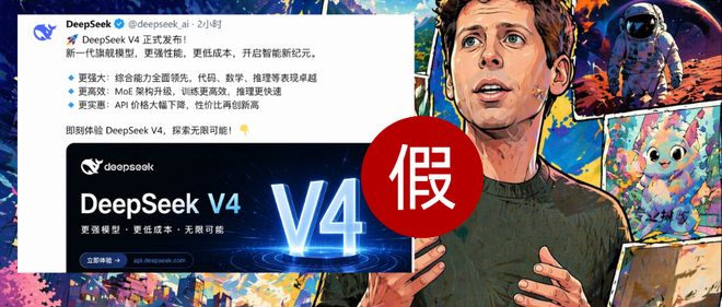 文章头图中DeepSeek V4发布的公告是通过ChatGPT Images 2.0生成的。提示词包括:“一张关于 DeepSeek V4 发布公告的推文截图,由deepseek官方账号发布。”