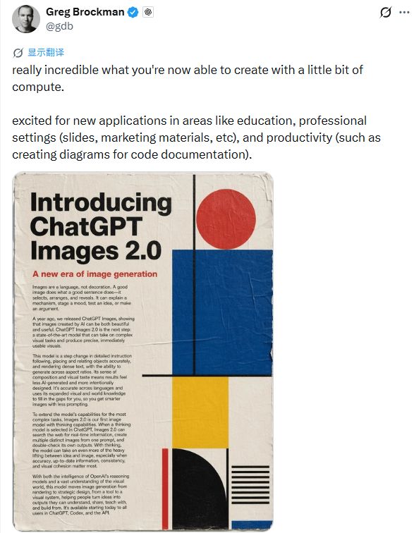 OpenAI于4月22日凌晨推出了ChatGPT Images 2.0版本。