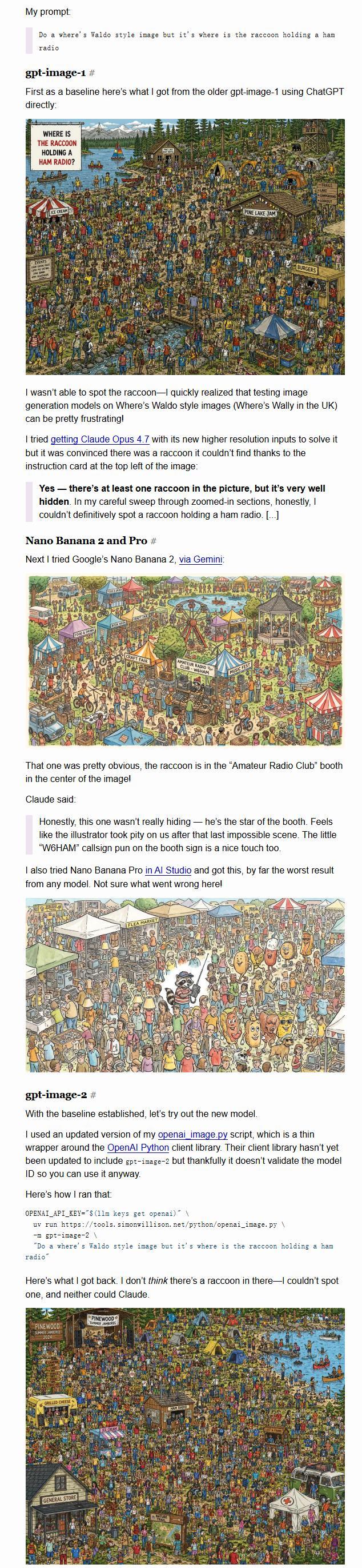 开发者西蒙·威利森进行的一项测试揭示了新旧版本之间的显著差异。他要求两个模型分别绘制一张寻找浣熊的图片,结果发现新版模型在高画质模式下,清晰地呈现了一只坐在业余无线电摊位里的浣熊,而老版则未能找到目标。