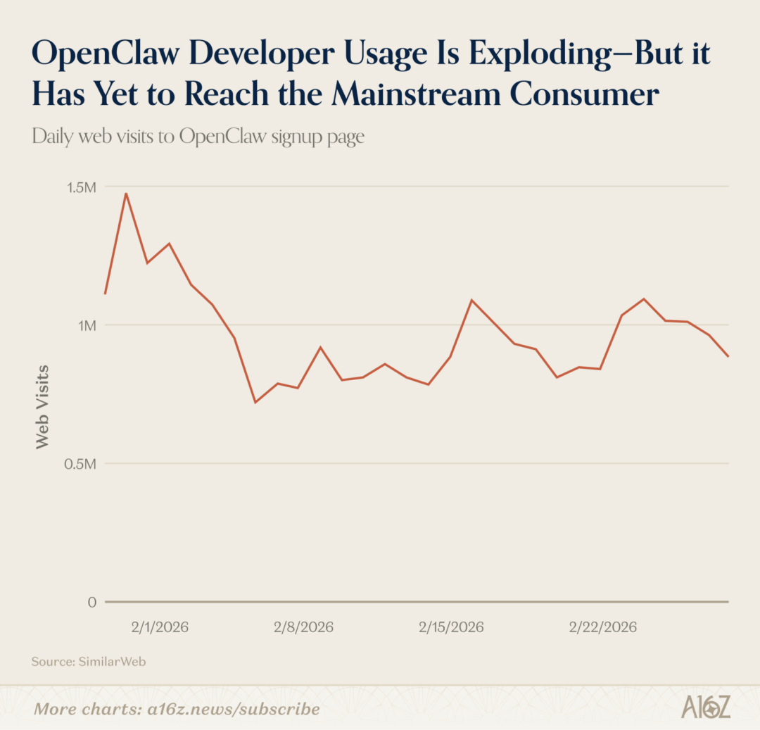 去年兴起的vibe coding平台发展势头放缓,而OpenClaw等新型智能体应用则逐渐崭露头角。