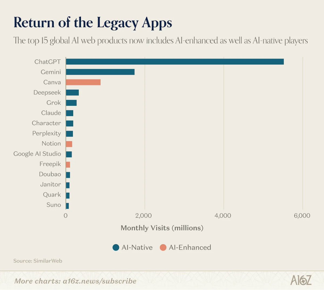 以前评估一个产品的受欢迎程度主要看其网站访问量,但现在AI形态多样,传统指标已无法准确捕捉实际使用情况。