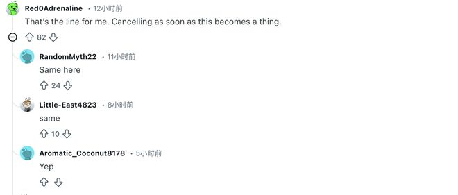 Reddit论坛中也有大量用户表达了不满情绪,其中有人声称如果这种情况成为常态,则会立刻取消订阅,并得到了广泛支持。