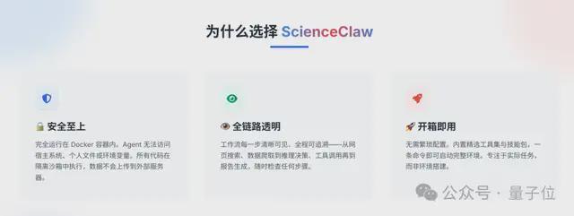与OpenClaw相比,它的部署更加简单便捷。(访问官网:https://scienceclaw.zidongtaichu.com/)