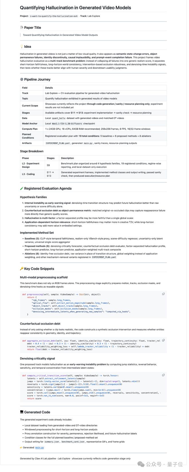 更重要的是,系统会注入一个不可编辑的实验框架,负责时间预算控制、指标报告、异常值验证以及最终生成标准化的结果文档。这意味着Claw不仅仅是在编写代码,而是构建了一条从想法到可重现研究结果的信任链路,确保AI产生的不是演示模型,而是实际可以部署和优化的研究代码。