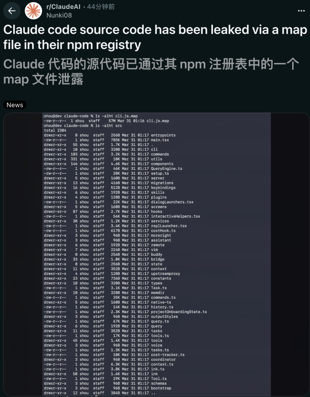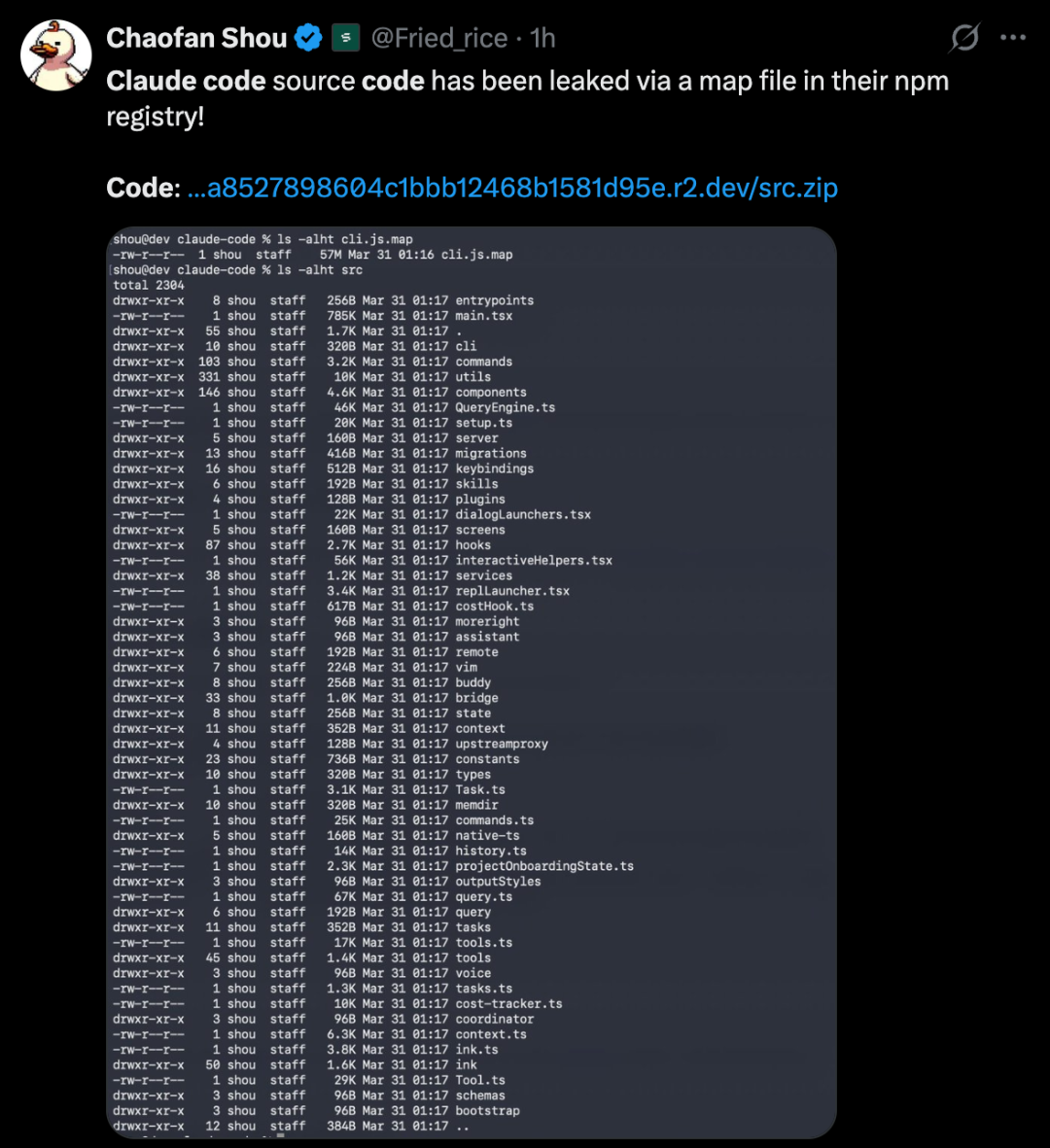Claude Code源代码通过npm注册表中的一个map文件惨遭泄露,全部在线裸奔。