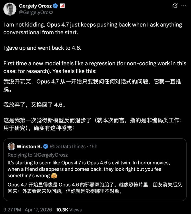 上线两天,Opus 4.7就把AI社区撕裂了。