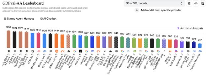 据Artificial Analysis的公开评测,Opus 4.7在GDPval-AA上拿到1753 Elo,领先第二名79分。