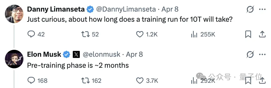 马斯克此次在推特上的发言引起了广泛讨论和关注,他也在回复了一些网友的问题,比如关于训练一个10万亿参数模型的时间问题。对此马斯克表示预估时间为两个月左右。