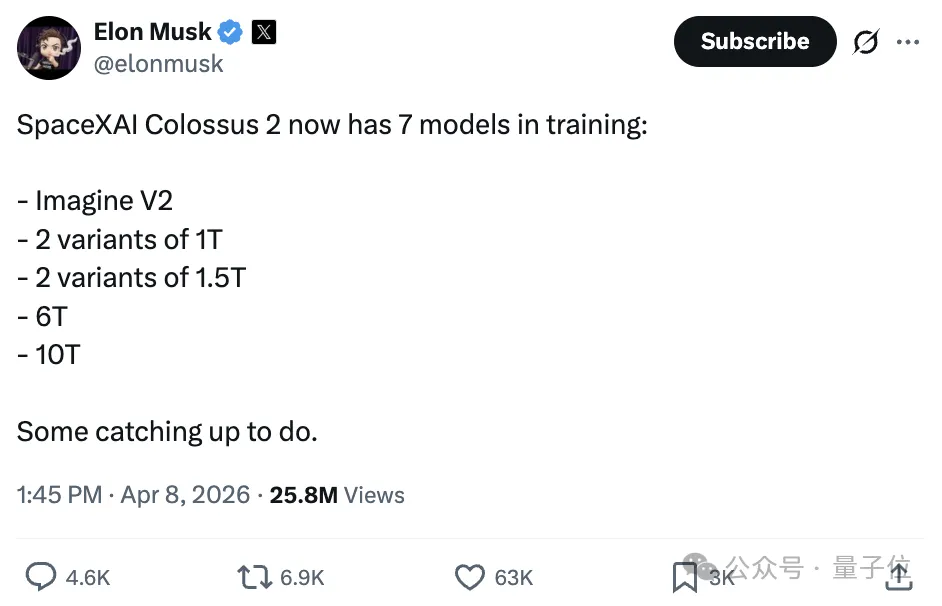近期马斯克在社交媒体上发布了一条帖子,表示xAI团队正在使用Colossus 2超级计算机训练7个模型,其中最大的一个模型参数规模达到了10万亿级别。