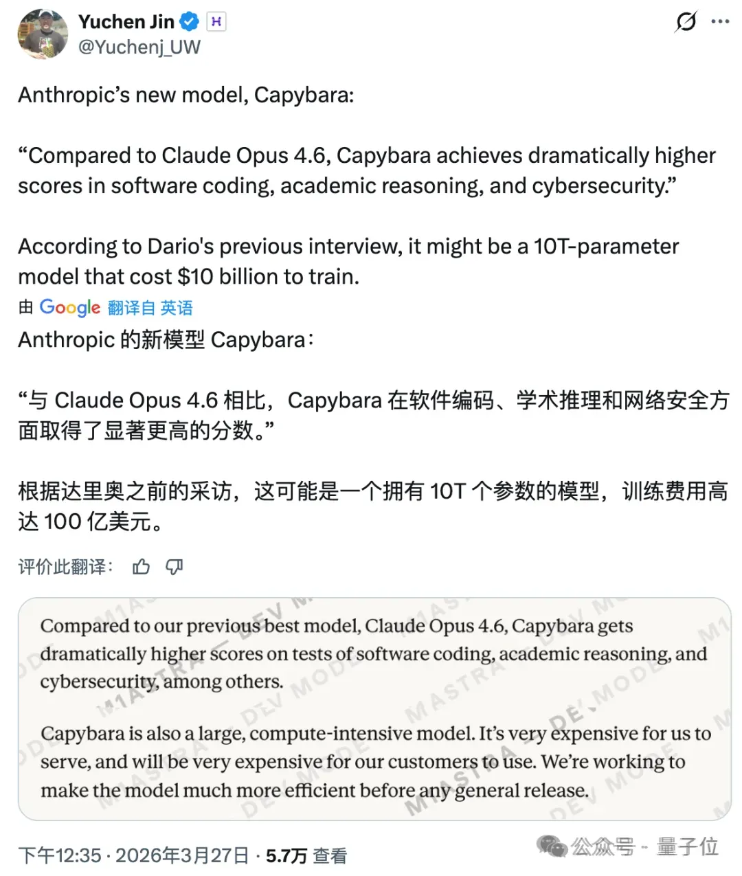 除了已发布模型的模型外,前几天Anthropic团队因权限配置失误,把自家未发布模型泄露了。