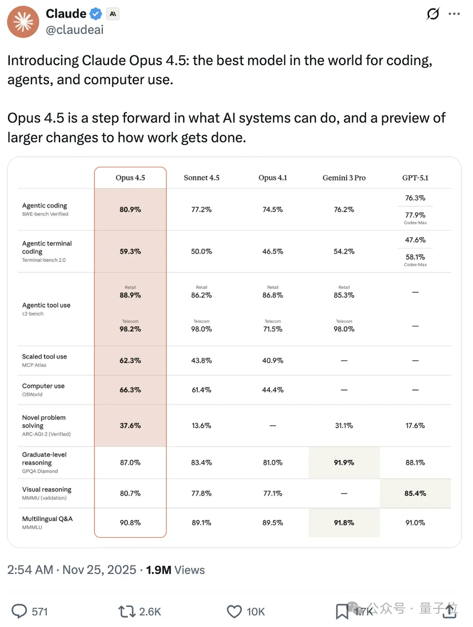Claude Opus 4.5后脚跟上,前端开发、视觉能力显著提升,更擅长使用电脑;在深度研究、PPT制作与电子表格处理等日常任务方面的表现也全面升级。