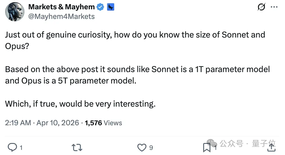 你还别说,你还真别说。最新模型Claude 4.6 Sonnet ~1-2T、Claude 4.6 Opus ~1.5-2.5T/2-5T,还真和老马手滑泄露的“Sonnet1T、Opus5T”对上了。