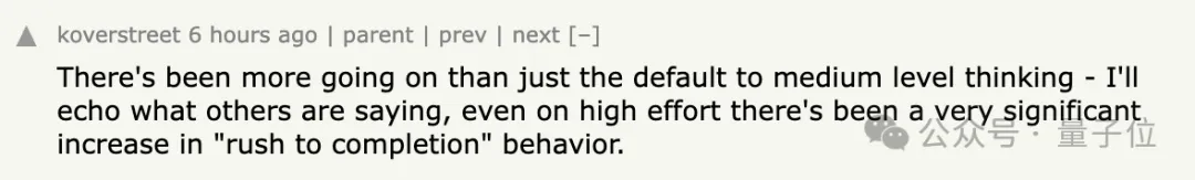 然而,许多用户并未注意到这些变化,并报告称在调整到最高努力级别后仍然遇到低质量的输出结果。一些人质疑问题是否仅仅归咎于中等的努力级别设定,还有人指出模型表现出一种急于完成任务的行为倾向。