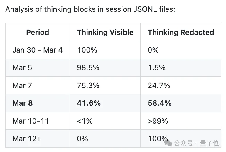 有用户在3月8日反馈过质量退化问题——这一天恰好是隐藏思考块占比突破50%的时间节点。