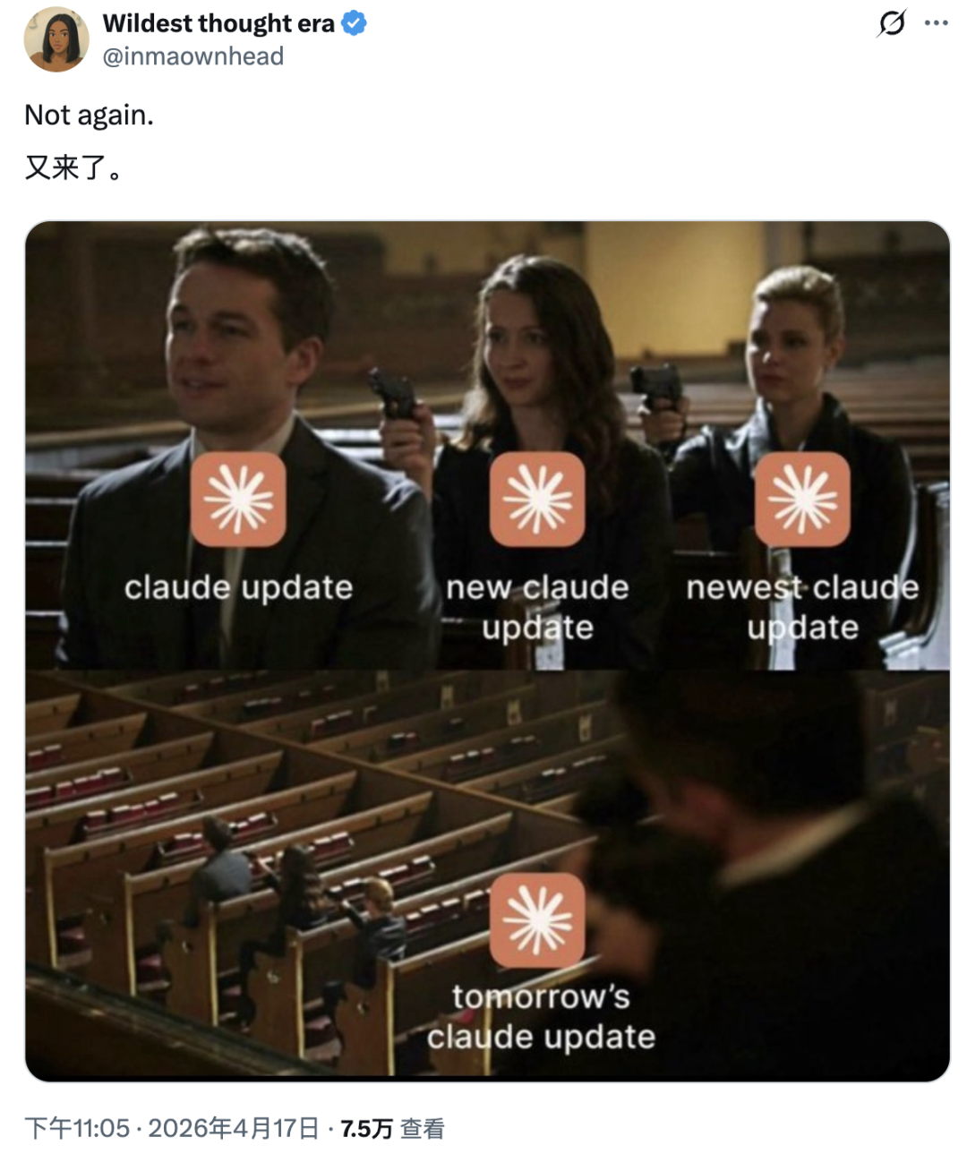 关于 Claude 的进化速度,网友们的调侃恰到好处。