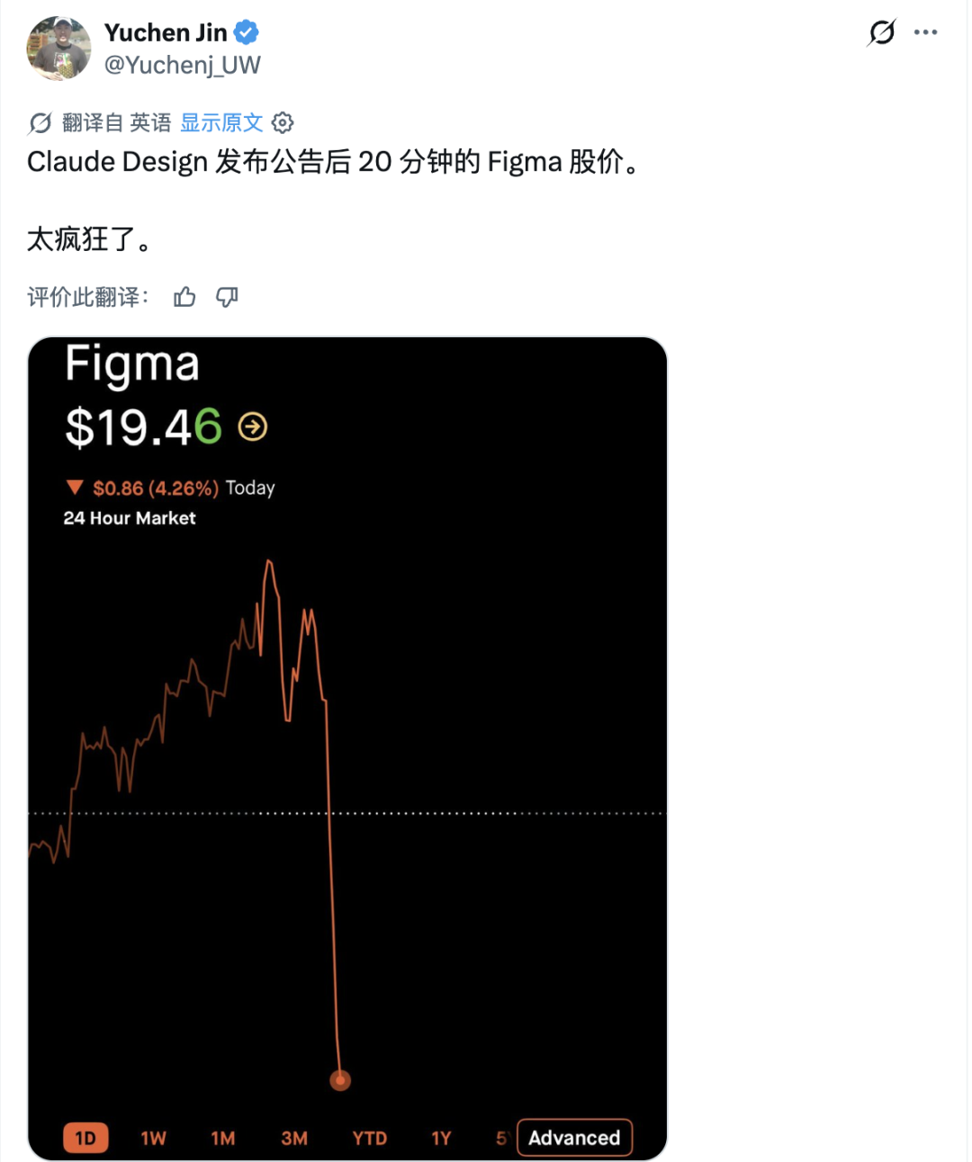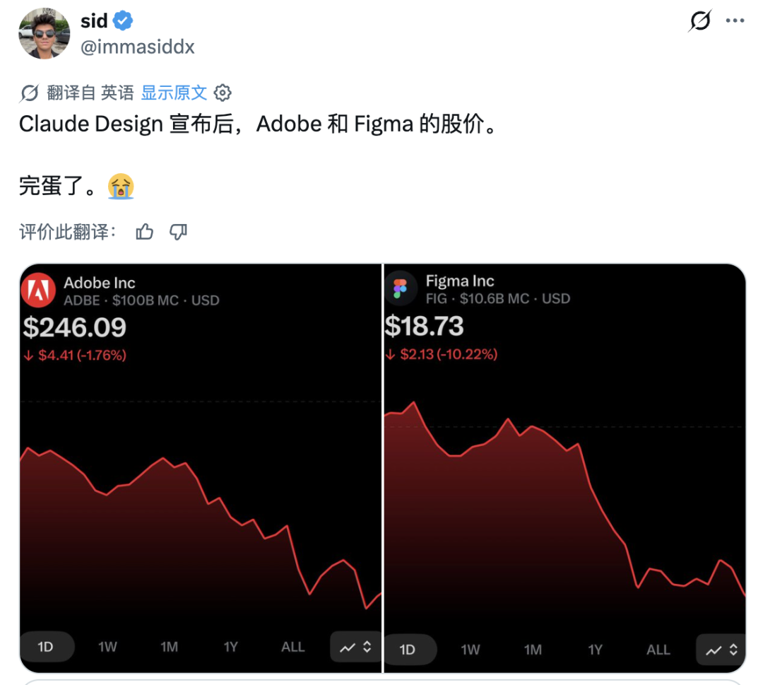 自从 Claude Design 发布以来,Figma 和 Adobe 的股价就持续下跌。