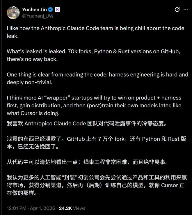 面对如此大规模源代码泄露事件,Anthropic保持了出乎意料的冷静。