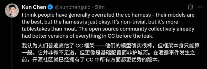 因此,CC这次源码泄露,实际上是将一个原本专有的「工业级工具箱」抛向了荒野,这就降低了所有人构建完善编码智能体的门槛。