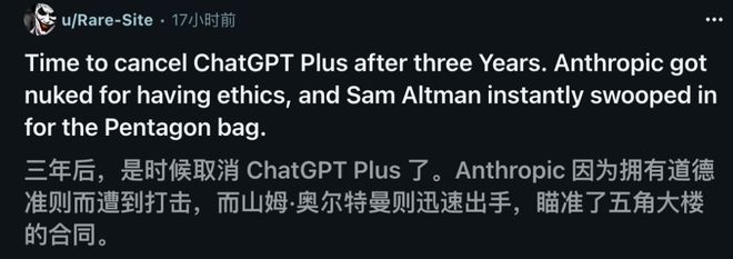 这场正面交锋中,Anthropic虽然失去了2亿美元的大单,但OpenAI却丧失了人心。