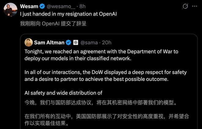 不料剧情突变,OpenAI员工联名抗议后,奥特曼却宣布拿下国防部合同的消息传来。