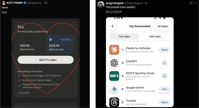 大批用户通过下载和订阅来表示对Claude的支持。