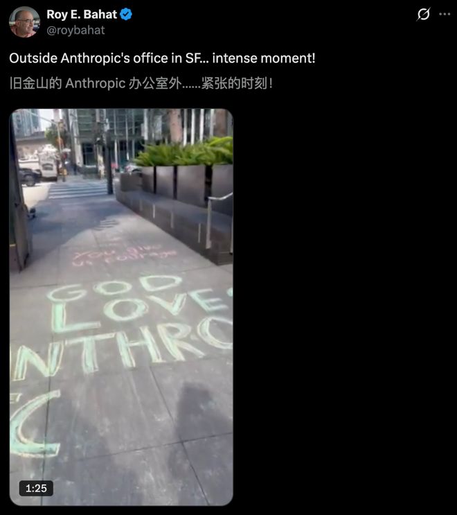 人们不仅在旧金山办公楼附近的街道上以粉笔涂鸦表达支持,并写下了诸如“感谢不造天网”的字样。