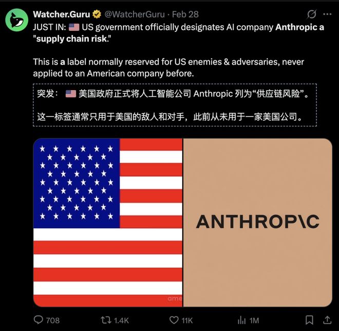 导火索在于Anthropic与国防部的谈判破裂,
