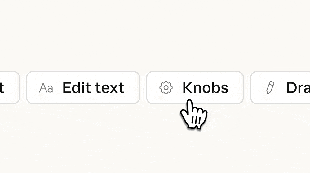用户可以使用“Knobs”功能调整字体格式或编辑文本内容,也可以直接在设计草图上进行划线、圈选等修改操作,并通过下方的对话框输入具体的更改建议。