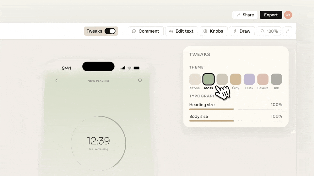 3、使用精细的控制功能进行微调。你可以直接对特定元素添加注释、编辑文本,或使用调整旋钮实时调整间距、颜色和布局。然后让Claude将你的更改应用到整个设计中。